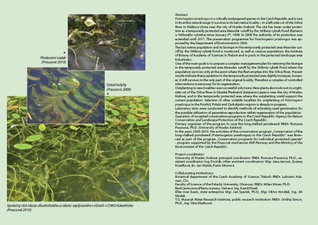 Popularization of the rescue programme for Long-stalked Pondweed (Potamogeton praelongus) -